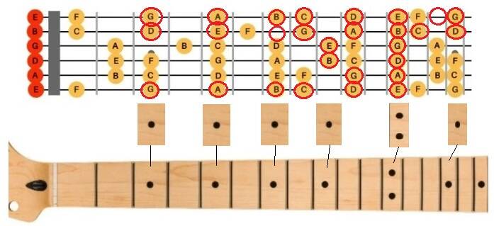 Daarnaast kun je gebruiken: de 3e, 5e, 7e en 8ste fret op de hoge E-snaar en de hoge E-snaar los