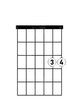 Afbeeldingen 2 en3 gelden exact dezelfde aanslag voor. Afbeelding 4 speel je met de duim vanaf de 2e snaar van boven (A-snaar). De overige snaren bespeel je exact het zelfde als voorgaande akkoorden/linkerhandposities.