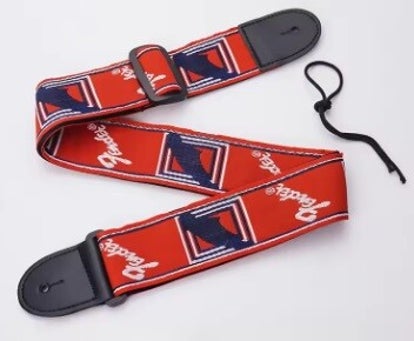 Degelijke gitaar draagband van het merk Fender in de kleur rood.